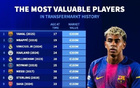 德转历史身价榜:4人2亿最高,梅西1.8亿第7,C罗1.2亿第30